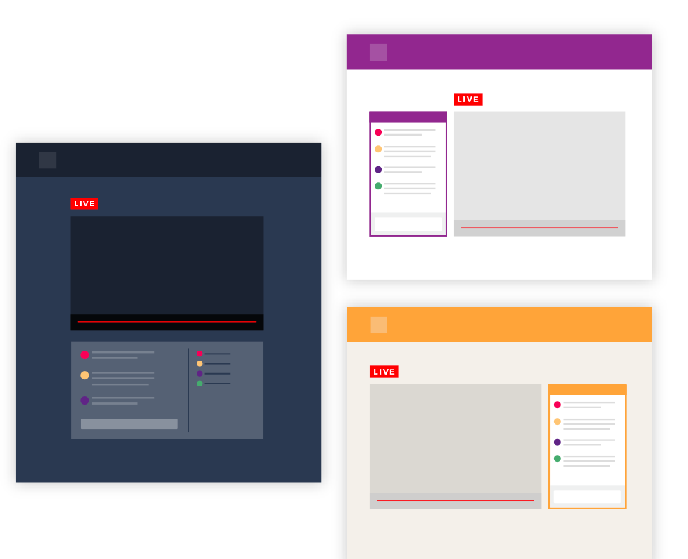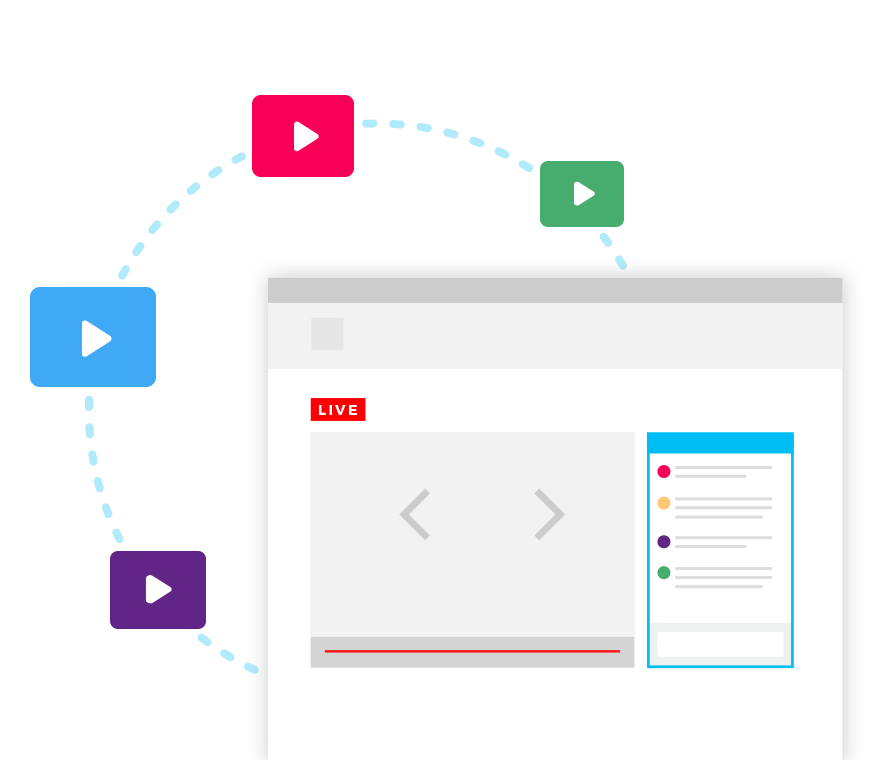 The smart way to combine live chat and video. Chatroll can be used with most major third-party video platforms. With Chatroll, you can leverage your existing video platform experience, or experiment with new video sources. Chatroll gives you the flexibility and confidence to build the best experience for your audience, without being limited to a single video platform. Using Chatroll as the foundation for your live events is a smart and future-proof strategy.