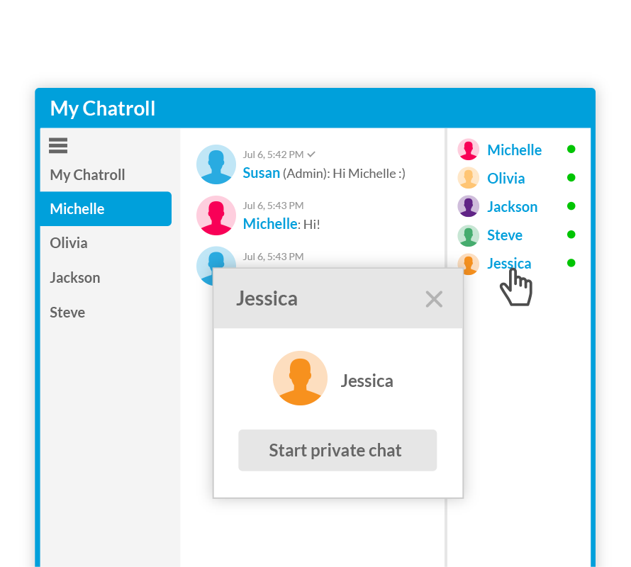 Chatroll is your trusted platform for live chat events. Whether you have an audience of 10 or 10,000+, Chatroll has the powerful features and scalability to help you reach more people and achieve your goals.